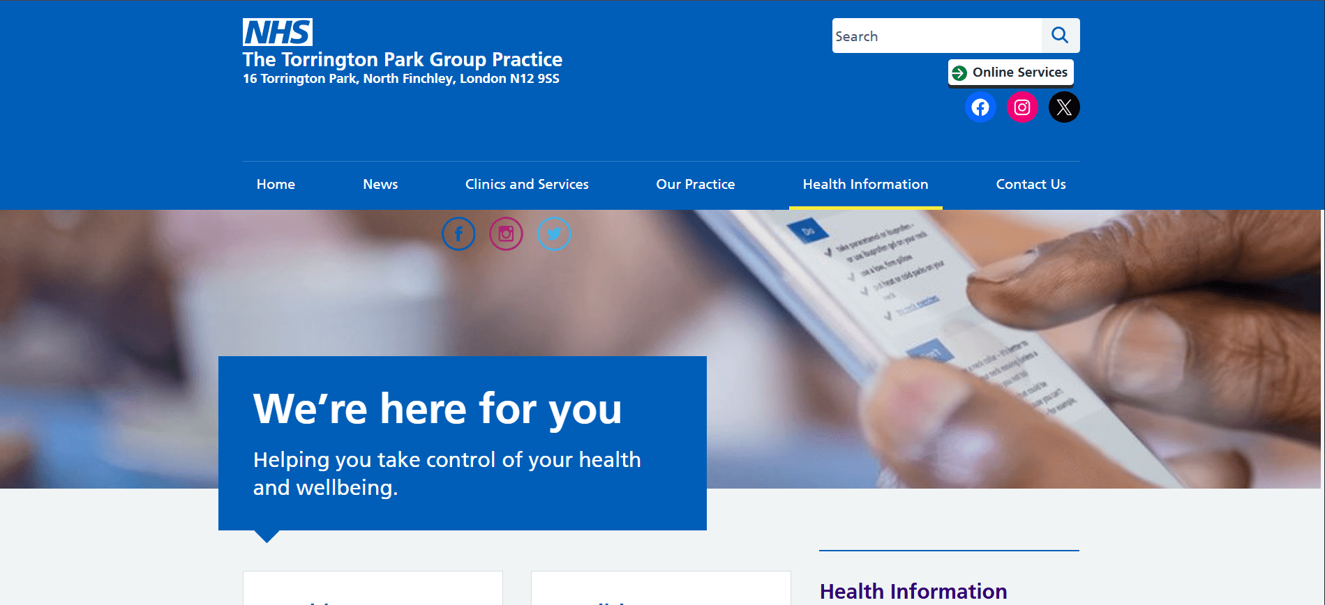 GP surgery website being assessed : https://www.torringtonparkgrouppractice.nhs.uk/health-information/