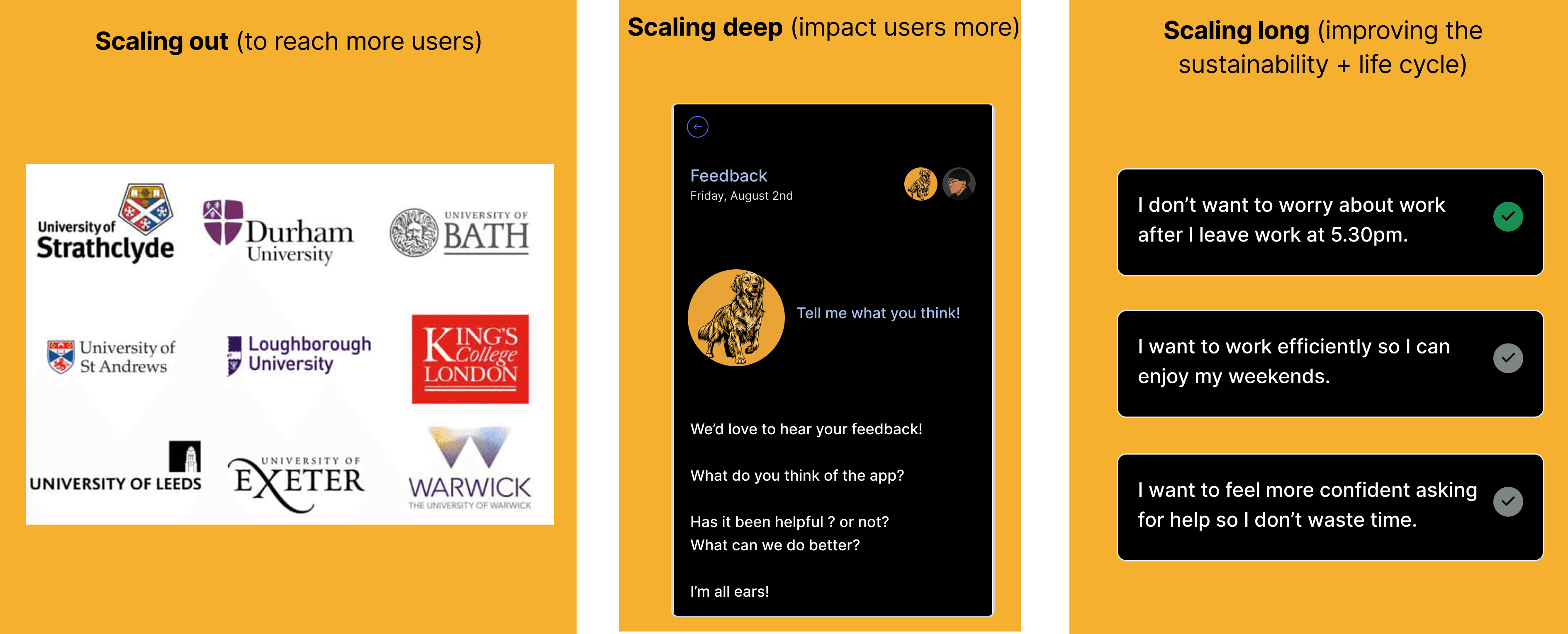 User feedback: Highly positive, all users saying they would use the product.