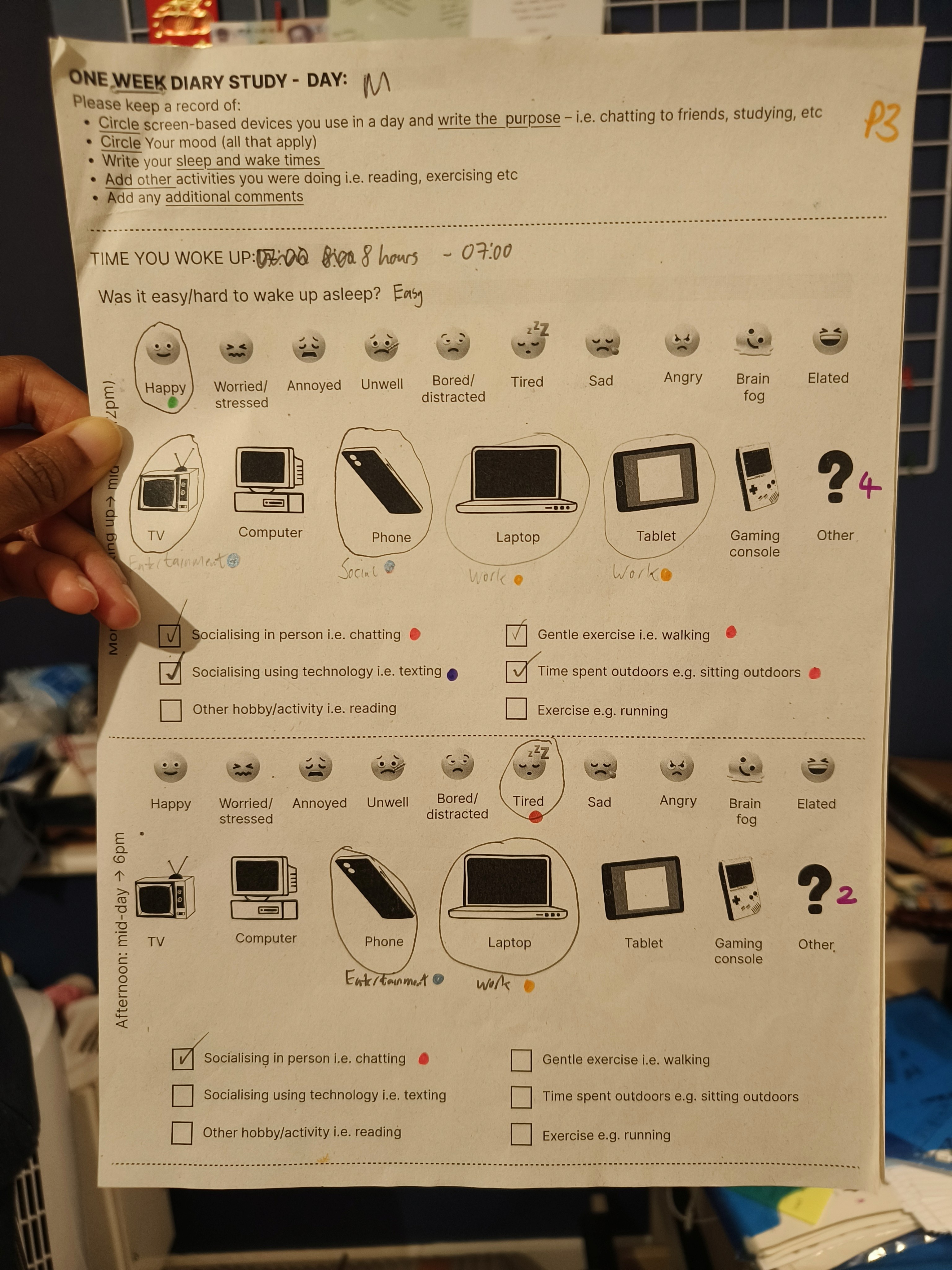 8 users were recruited using convenience sampling. Semi-structured interviews with card sorting activities and diary studies were used.
