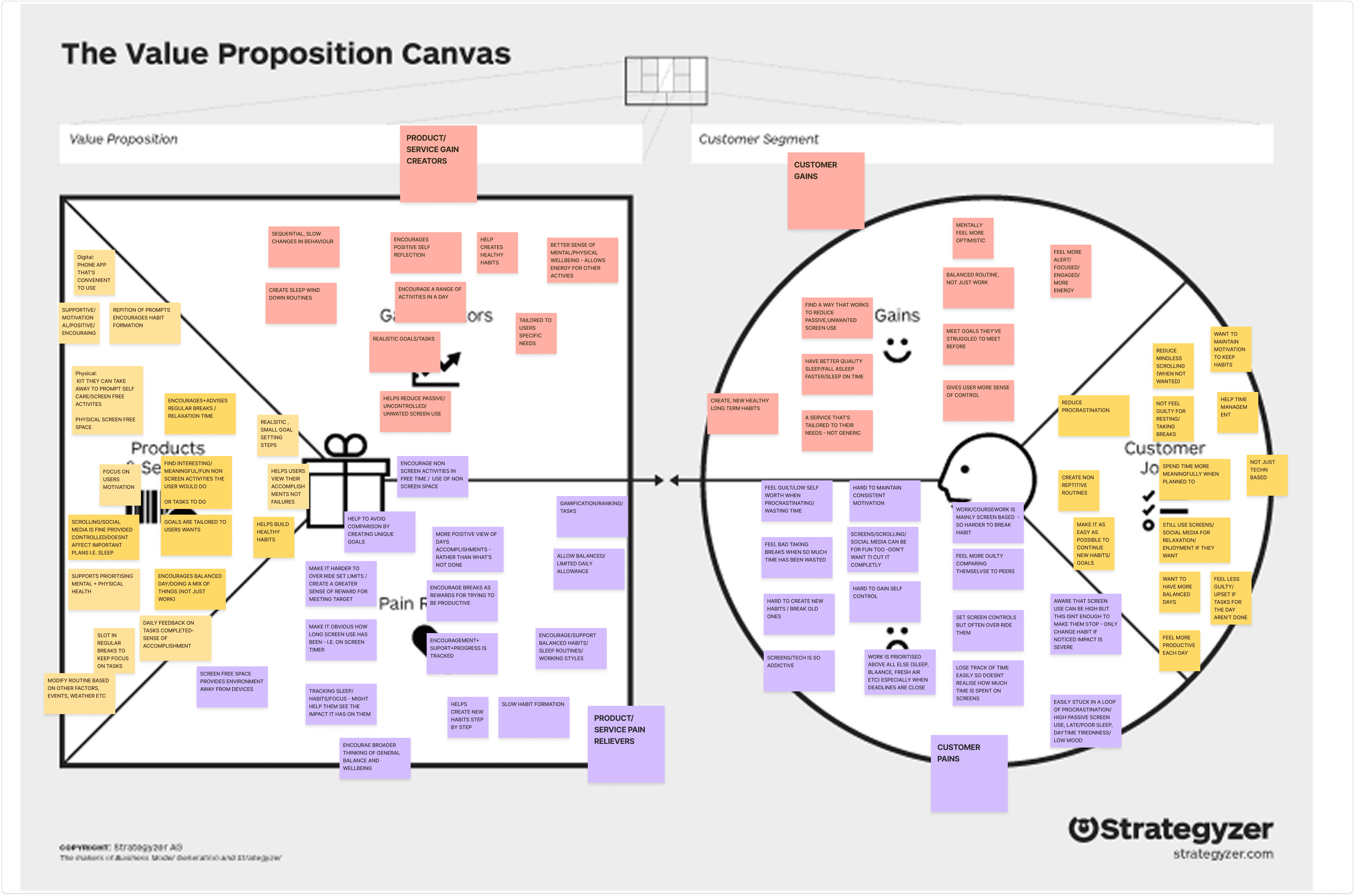 I wanted my concept to help users shift their current beliefs and mental models to more positive ones, to improve wellbeing. Using the iceberg tool helped to get to the core of the user's thinking.